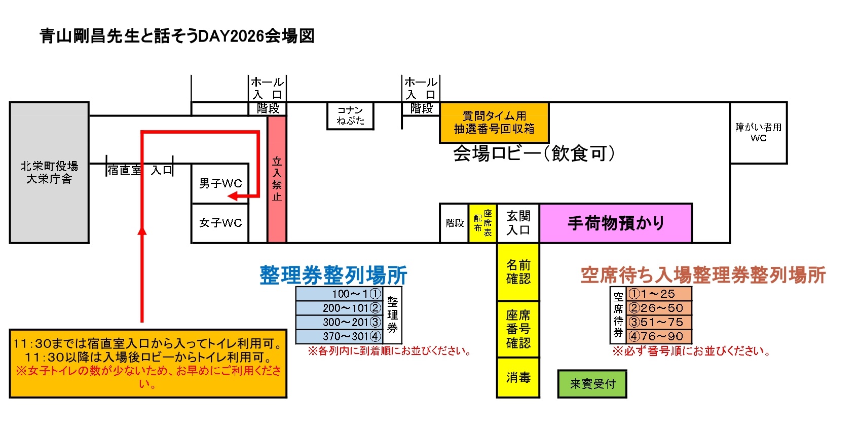※青山先生へのお手紙やプレゼントは一切受け付けておりません。ご持参されないようにご注意ください。ご協力をよろしくお願いします。