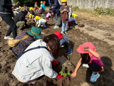10月の終わりに、北栄町内のこども園の園児さんたちが「さつまいも掘り」に来てくれました!