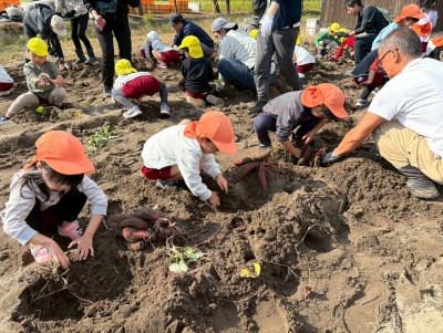 小さな手で一生懸命に掘り進めて、立派なさつまいもをたくさん収穫