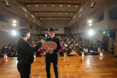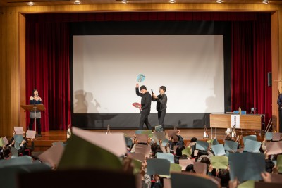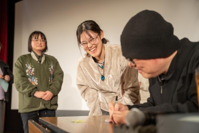 そして、青山先生には会場とは反対を見ながら出すうちわを考えていただき、振り向いたときにじゃんけんをしていただきました!